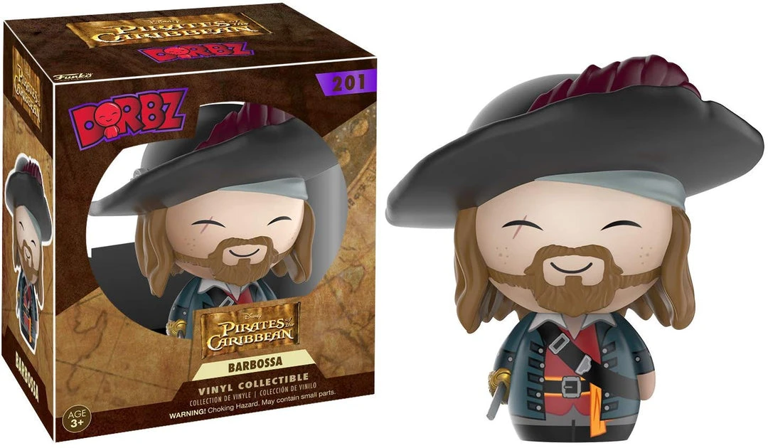 From Pirates of the Caribbean, Barbosa, as a stylized Dorbz vinyl from Funko Figure stands 3 inches and comes in a double sided window display box. Check out the other Pirates of the Caribbean figures from Funko Collect them all.