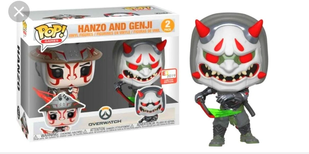 Overwatch Funko POP! Games Hanzo & Genji Exclusive Vinyl Figure This E3 2019 exclusive two-pack shows the Shimada brothers facing off in combat, with Oni Genji performing a Swift Strike while Kabuki Hanzo lunges into the fray.