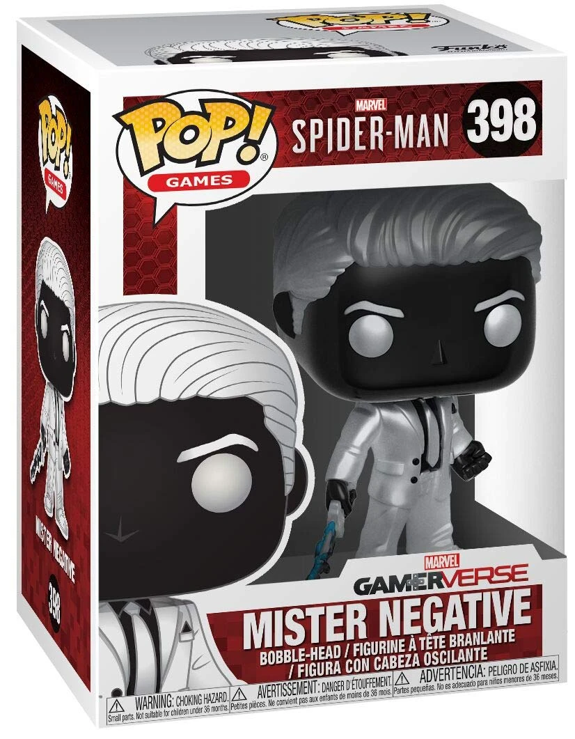 From spiders, an video game – Mr. Negative, as a stylized pop vinyl from Funko! figure stands 3 3/4 inches and comes in a window display box. Check out the other spider figures from Funko! collect them all!