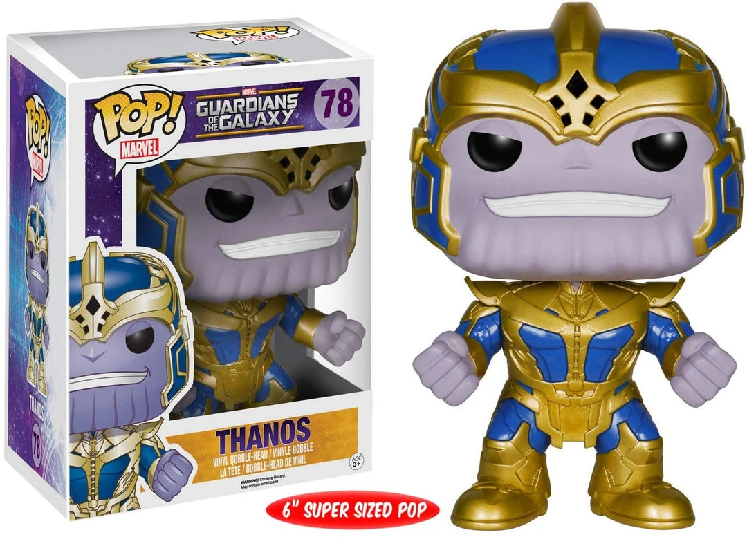 From the Guardians of the Galaxy film comes this Guardians of the Galaxy Thanos 6-Inch Pop! Vinyl Bobble Head Figure! This Guardians of the Galaxy Thanos 6-Inch Pop! Vinyl Bobble Head Figure stands about 6-inches tall and comes in a window display box. This Thanos Pop! Vinyl figure makes a great addition to any Marvel and Guardians of the Galaxy fan’s collection!.
