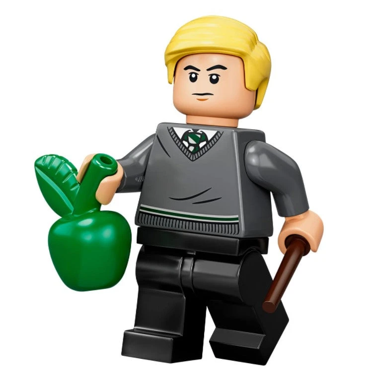 - The Harry Potter™ minifigure has a wand and Marauder’s map; the Draco Malfoy™ minifigure has a wand and an apple; the Hannah Abbott minifigure has a wand and lantern; and the Cho Chang minifigure has a wand and a book.