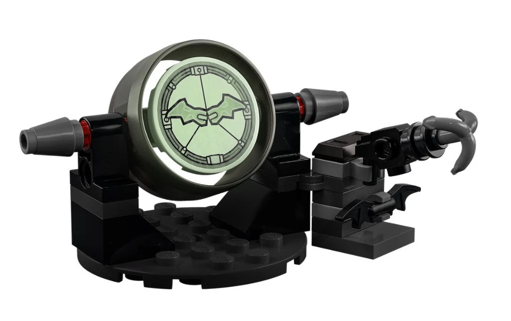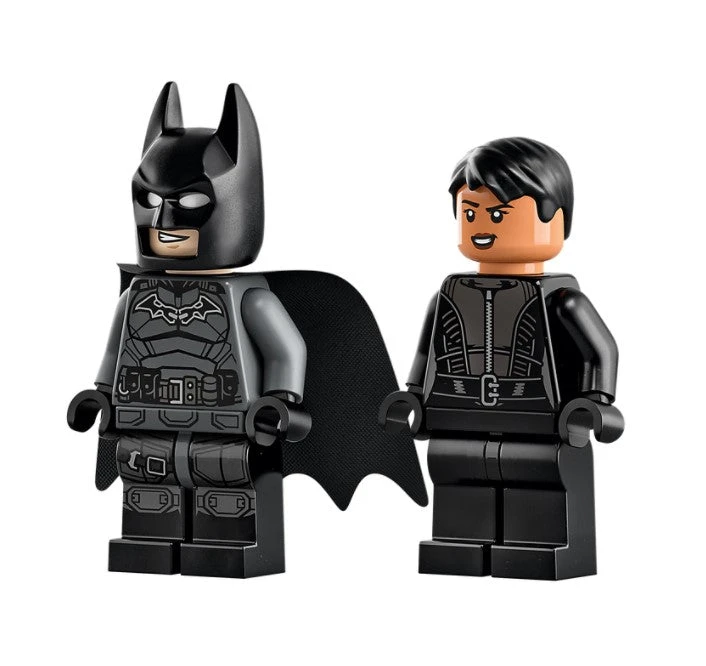 - 2 minifigures – Includes Batman™, with a fabric cape, and Selina Kyle™ minifigures, a Batarang™, grappling gun, chain, gem element and a glow-in-the-dark Batsignal™
