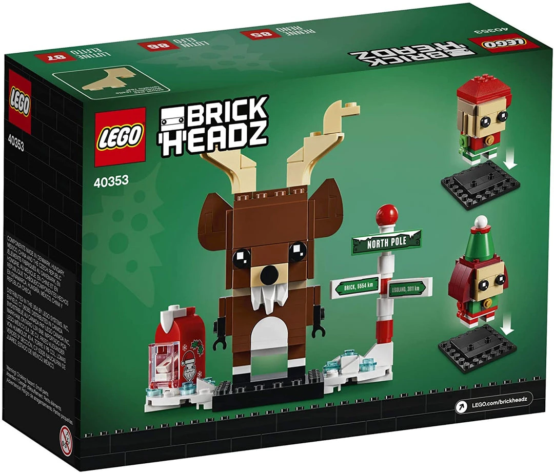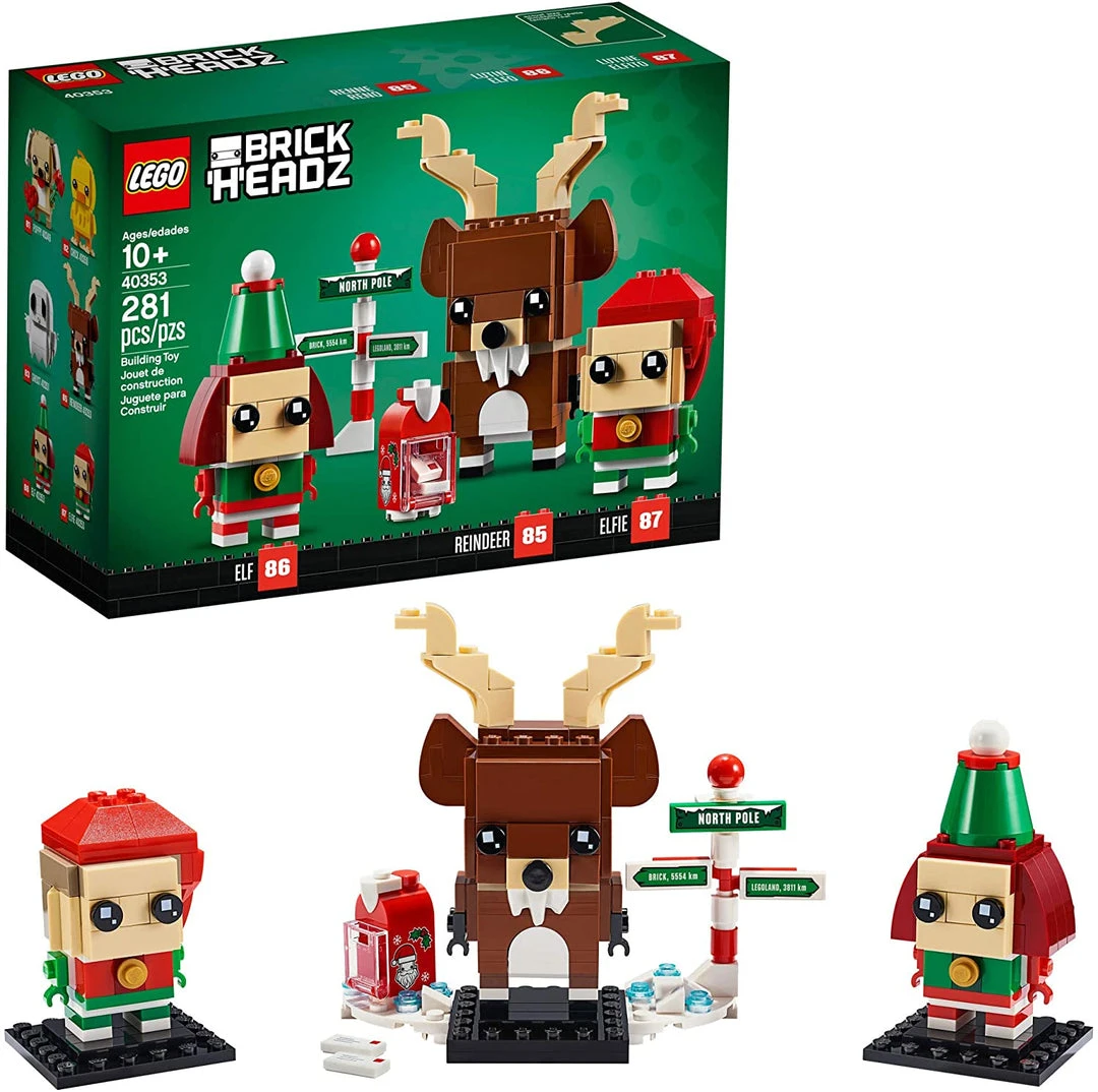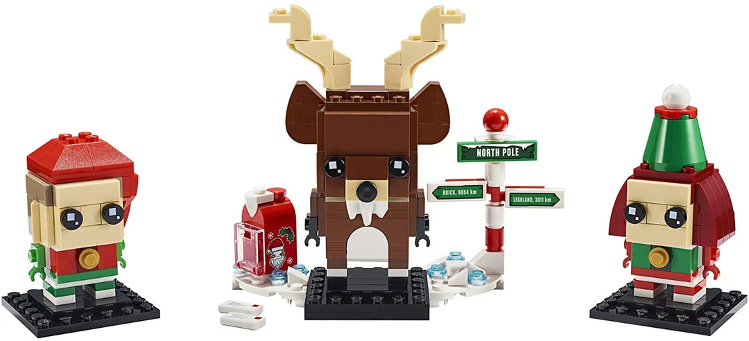 - Features buildable LEGO Brickheadz Reindeer, Elf and Elfie characters on LEGO baseplates