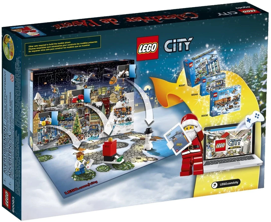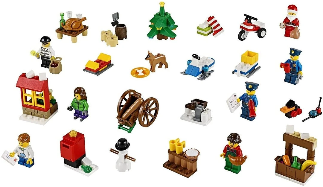 Make every day a festive building adventure as you count down to Christmas with the LEGO City Advent Calendar! Take the boy to post a letter to Santa, build a snowman, visit the Christmas market and go ice-skating with his friend. Play with an early Christmas gift of a duck built from LEGO bricks. Help the police to build an awesome sled to catch the crook who’s stolen the presents. Then it’s time for a celebration feast, exchanging gifts around the Christmas tree and a visit from a very special guest. Ho-ho-who could it be?! Includes 7 minifigures with assorted accessories: a boy, woman, girl, crook, 2 policemen and Santa.