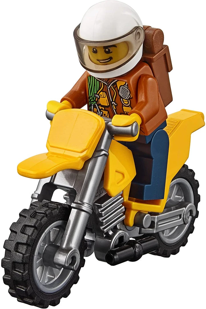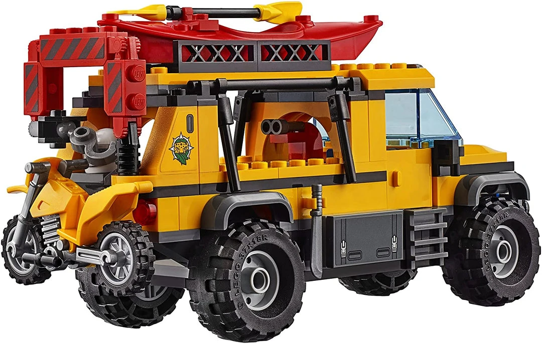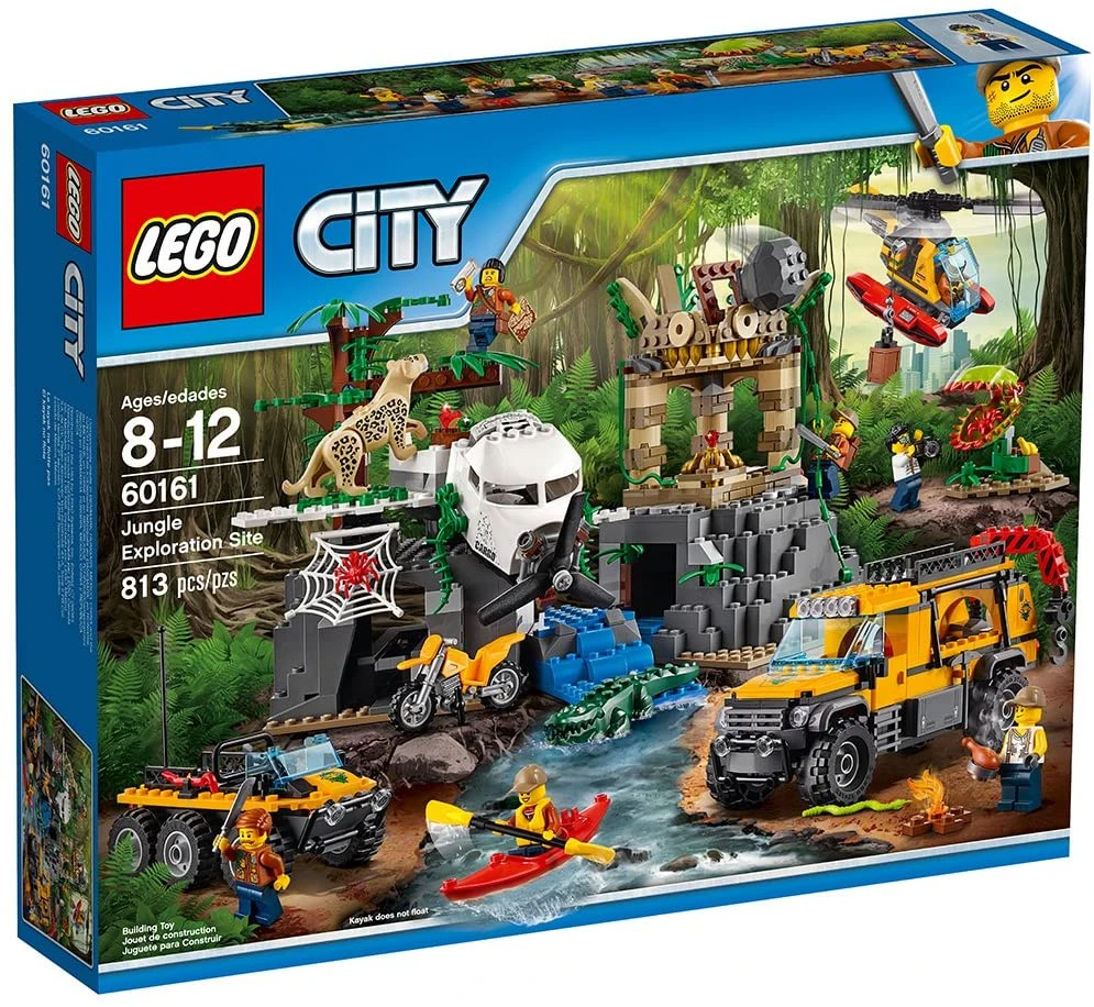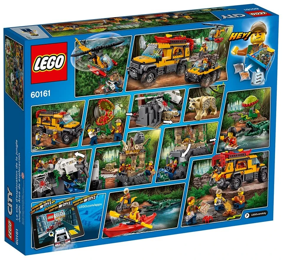 Uncover amazing things at the Jungle Exploration Site, featuring a plane wreck with opening cockpit, amphibious helicopter with minifigure cockpit, spinning rotors and winch, heavy observation truck with minifigure cab, folding crane arm, observation room and space for the included motorbike on the back, plus an amphibious vehicle with minifigure cab, and cave and temple build. Includes 7 minifigures, plus leopard, crocodile, snake, frog and 2 spider figures.
