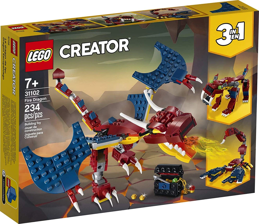 - With this awesome LEGO Creator 3-in-1 set, kids will have endless fun building a fire dragon, rebuilding it into a saber-toothed tiger, and rebuilding it again into a scorpion!