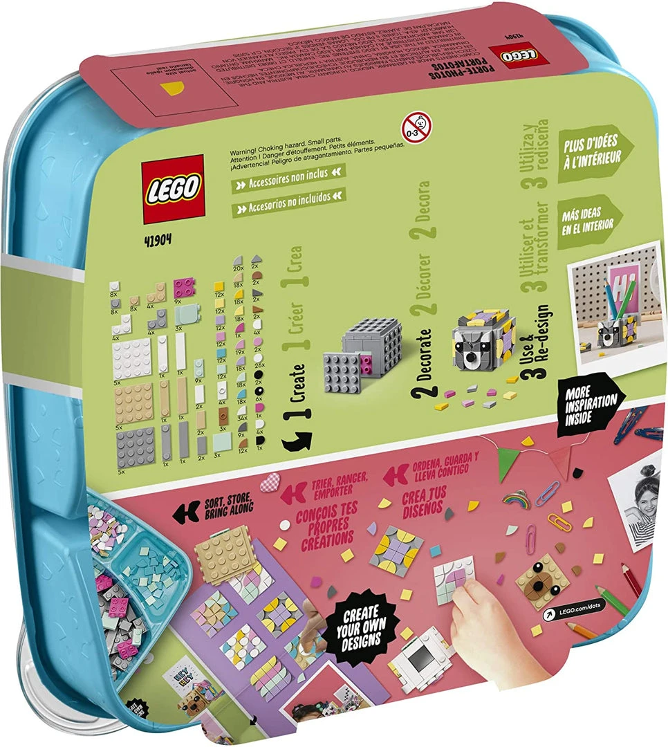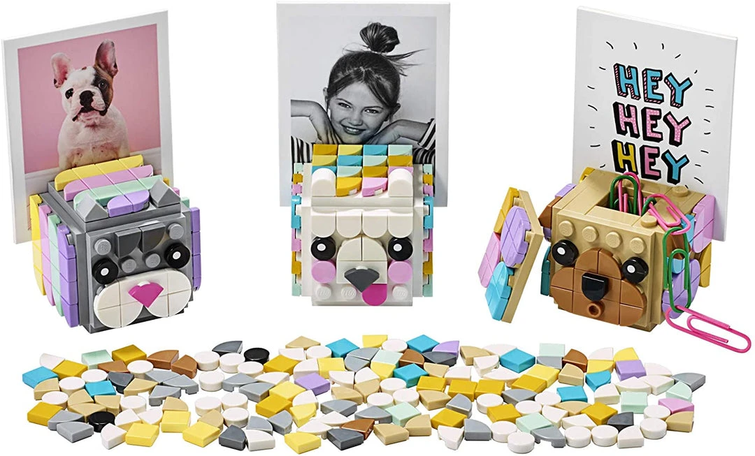 - Add to your child’s love of creative DIY with this sweet LEGO® DOTS (41904) cube set, featuring 3 animal cubes with lids and photo holders. Play starts with assembling the Animal Picture Holders, straight out of the box!