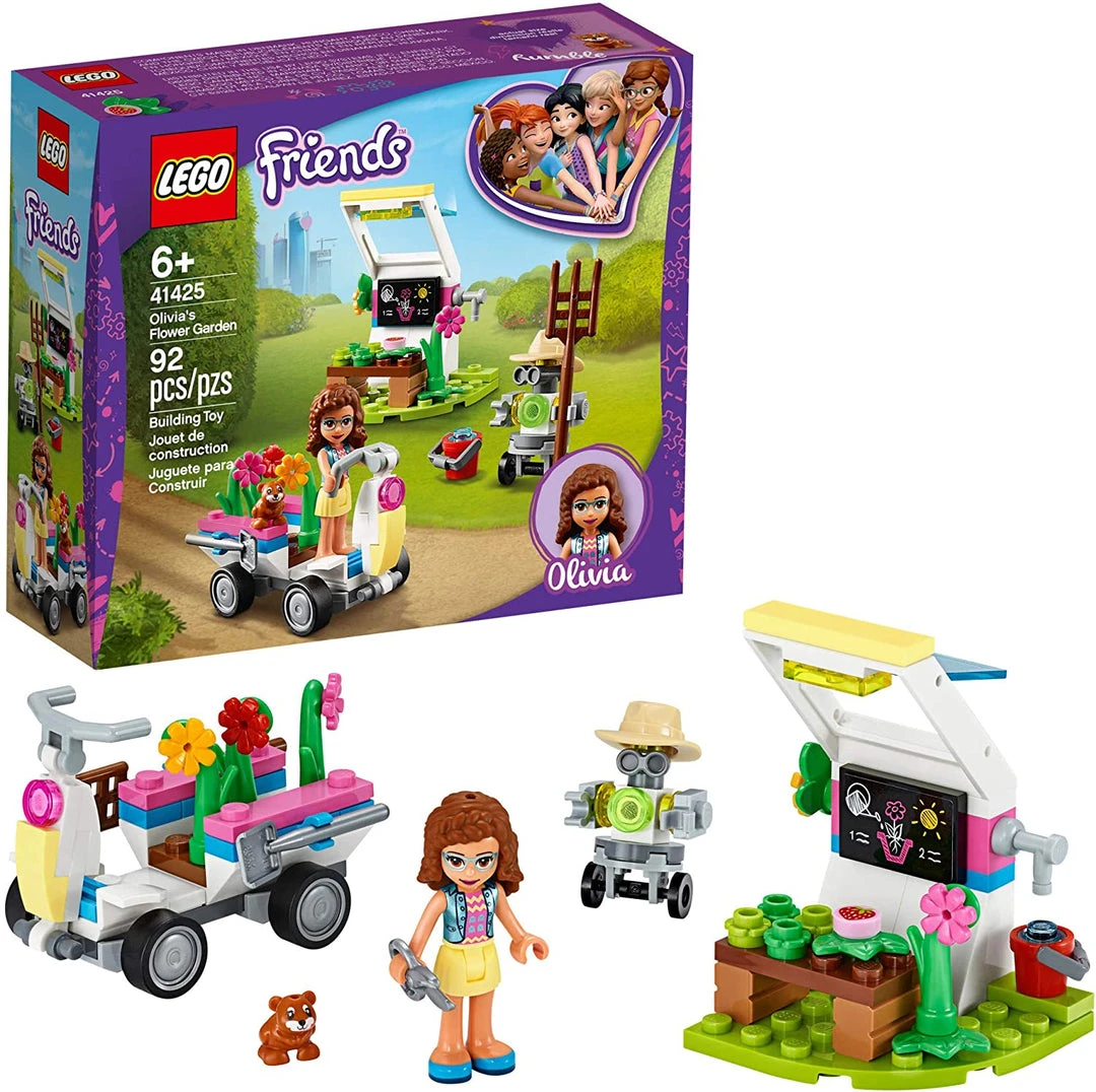 - Olivia’s Flower Garden (41425) includes a buildable mini-doll figure, a farmer robot figure, a cute hamster figure, a plant-collecting toy vehicle and a greenhouse where kids can pretend to grow blooms and fruit.