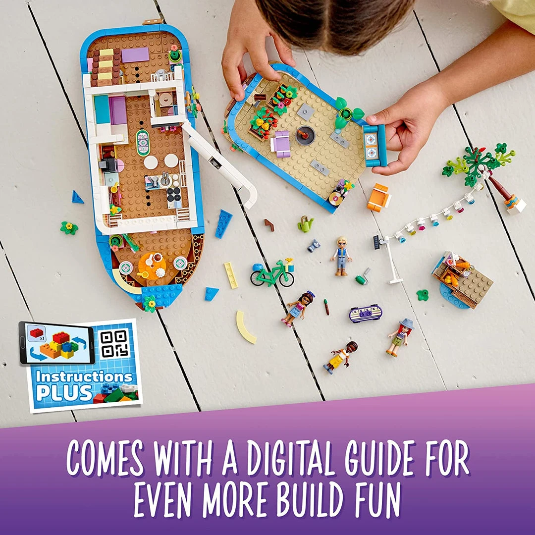 - Retro-styled eco-houseboat model – Let kids live out an environmentally friendly lifestyle aboard the LEGO® Friends Canal Houseboat (41702), which comes with a deck-top market garden