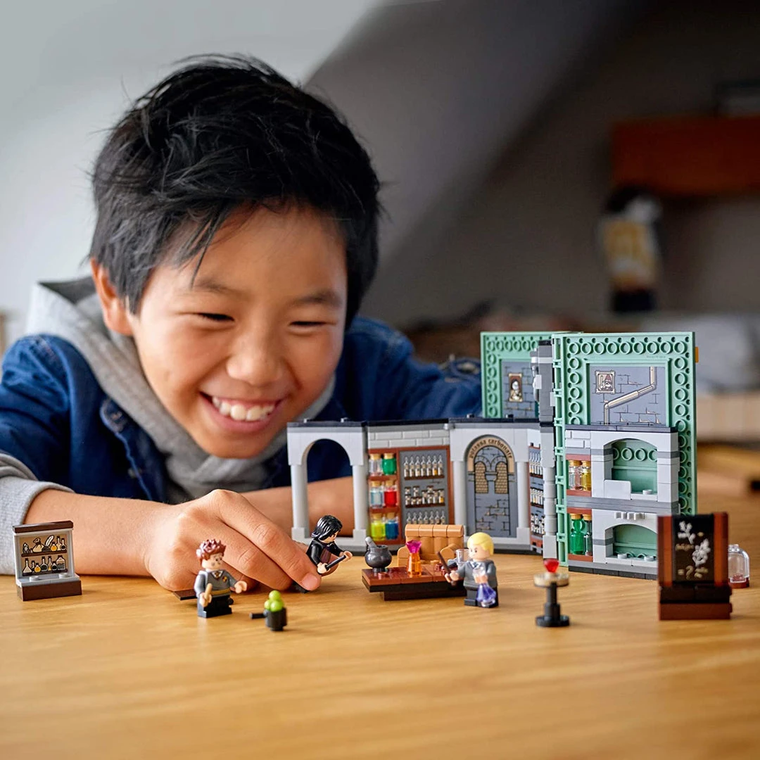 - LEGO® Harry Potter™ Hogwarts™ Moment: Potions Class (76383) is a brick-built playbook that opens and unfolds to reveal the dungeon Potions classroom from the Harry Potter movies.