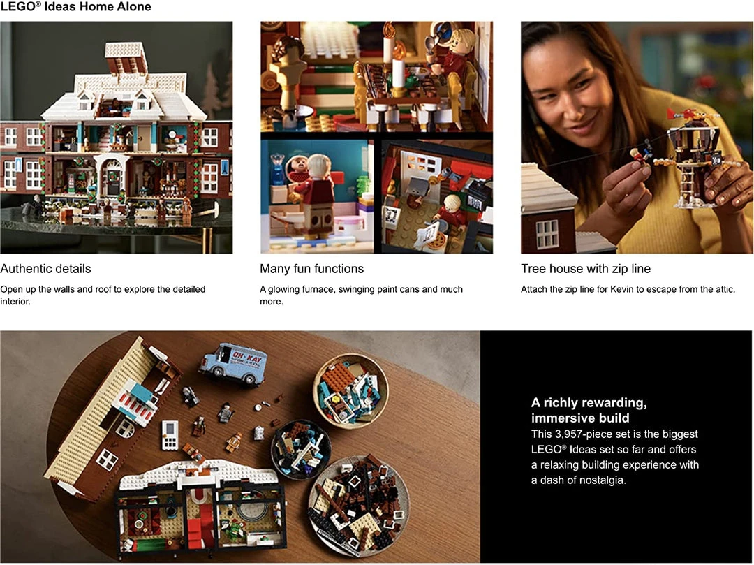 - Relive a family-favorite Christmas comedy movie with this LEGO Ideas Home Alone set (21330) for play and display.