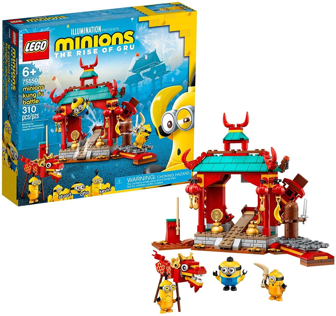 - Play starts right away with the 3 LEGO® Minion figures. This set (75550) includes Kevin and Stuart Minion toy figures in kung fu outfits, plus an Otto figure.