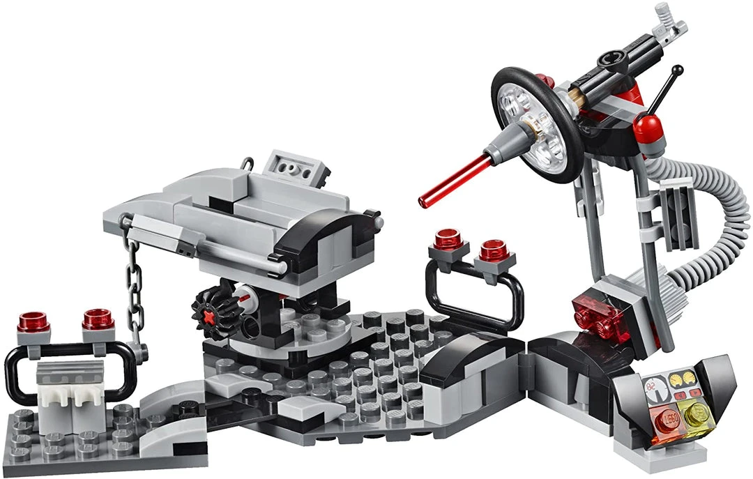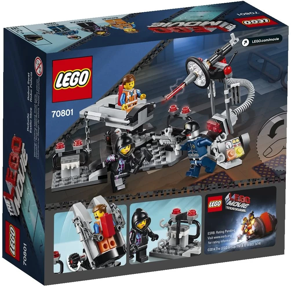 Danger! Emmet has been captured by Lord Business’ Robo Police who’ve taken him to the Melting Room. A Robo SWAT has chained and cuffed Emmet to a tilting, rotating laser machine and is trying to zap the Piece of Resistance from his back using a huge adjustable laser. Help Wyldstyle to slip into the Melting Room undetected, smash through the chains with the axe and free Emmet. Includes 3 minifigures with assorted weapons: Emmet, Wyldstyle and a Robo SWAT.