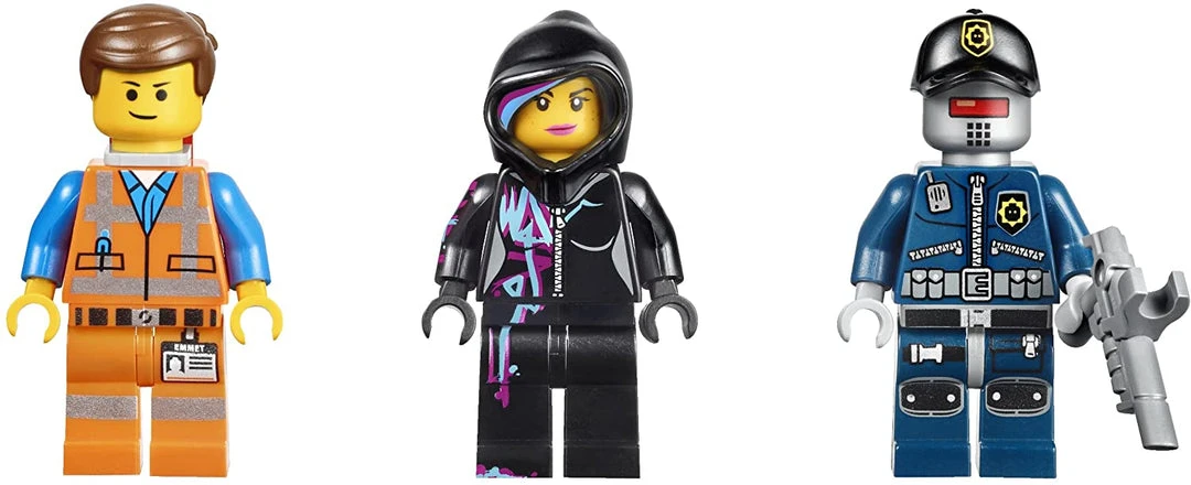 - Includes 3 minifigures with assorted weapons: Emmet, Wyldstyle and a Robo SWAT; Weapons include a blaster and an axe