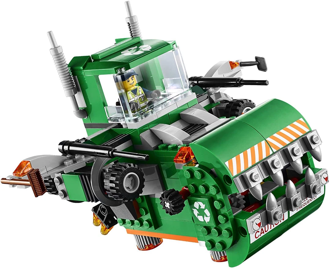 Rise up against the robots by converting the garbage truck with opening trash masher into a flying Trash Chomper with gobbling mouth, wing cannons and garbage-can exhausts. But watch out! The Micro Manager is preparing to fire its hidden flick missiles at the helpless citizens, so hurry! Includes 3 minifigures with assorted accessories: Garbage Man Grant, Garbage Man Dan and the chef, Gordon Zola.