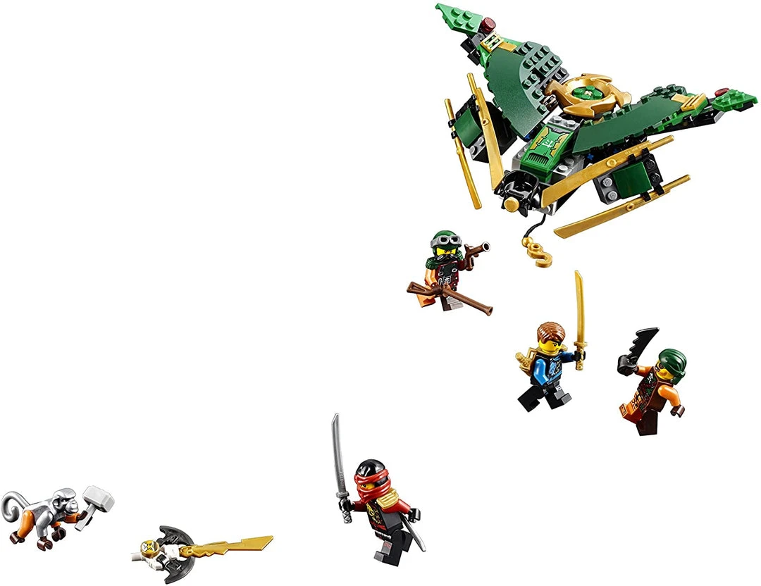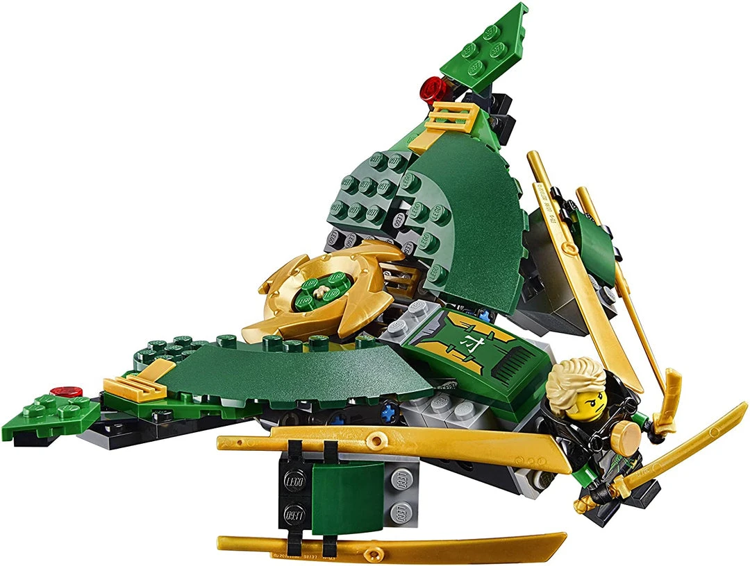 - Lloyd’s booster jet features an attachment point for Lloyd, a spinning Ninjago rotor to raise and lower the winch, and golden Ninja blades.