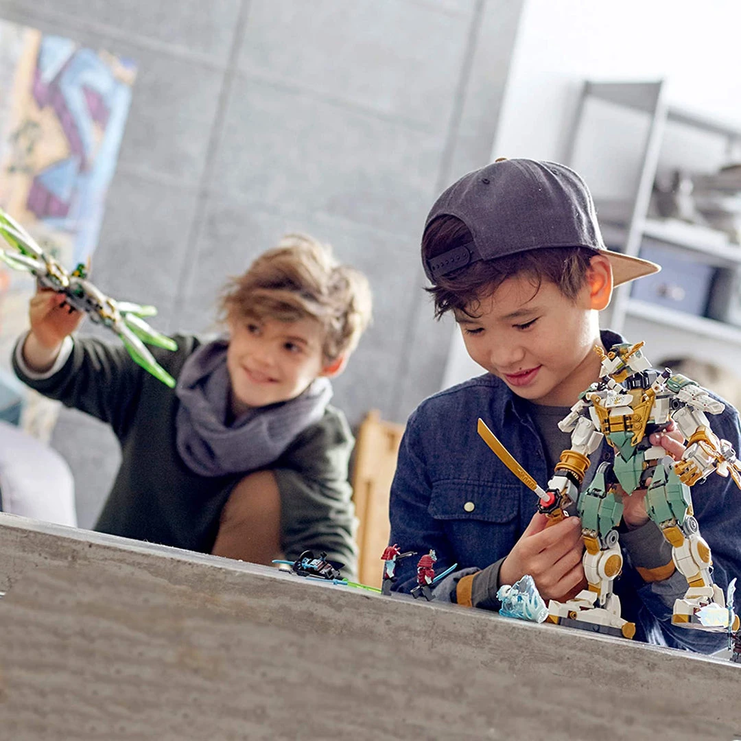 Role-play an epic battle between Blizzard Samurai and ninja action figures with LEGO® NINJAGO® 70676 Lloyd’s Titan Mech. This highly posable robot ninja mech toy for kids features a minifigure cockpit, gripping hand to hold a giant katana, spinning shuriken slicer/shield and a detachable flyer with minifigure driver’s seat, adjustable wings and 2 spring-loaded shooters. Children will love recreating scenes from the NINJAGO TV show and dreaming up their own ninja fighting games with 6 minifigures and lots of cool weapons and accessory elements, including the Scroll of Forbidden Spinjitzu weapon and the new-for-June-2019 tornado spinner toy of Zane FS. Give any LEGO builder an amazing building experience with Instructions PLUS, available in the LEGO Life app for smartphones and tablets. The easy-to-use, intuitive building instructions let them zoom, rotate and visualize their creation using the special ghost mode as they go. Instructions PLUS is also great for younger builders, guiding them through the building process for a greater sense of independence and achievement.