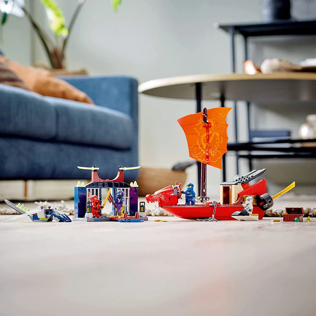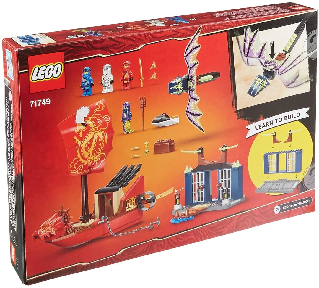 - LEGO® NINJAGO® Final Flight of Destiny’s Bounty (71749) introduces youngsters to building before they recreate ninja stories with this LEGO ship playset crammed with exciting features.