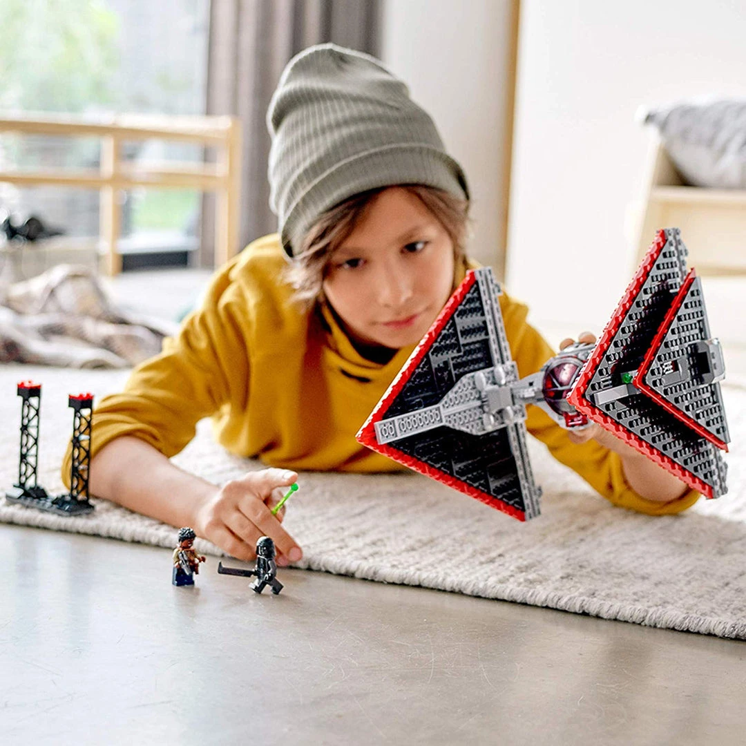 Open up a galaxy of adventures for youngsters with this super-sleek LEGO brick model of the Sith TIE Fighter from Star Wars: The Rise of Skywalker! It has a minifigure cockpit so kids can pretend to be a First Order TIE fighter pilot firing the spring-loaded shooters. There’s also a docking tower to recreate launch and landing or to display this striking building toy. A great gift idea for kids, this building kit includes 3 minifigures – First Order TIE Pilot, Knight of Ren and Finn – with cool weapons to inspire children to role-play their own First Order vs. Resistance battles. And you can add 75273 Poe Dameron’s X-wing Fighter for yet more exciting play possibilities. The LEGO Group has been recreating iconic starships, vehicles, locations and characters from the Star Wars universe for more than two decades and LEGO Star Wars has become a hugely successful theme. Everyone loves it!