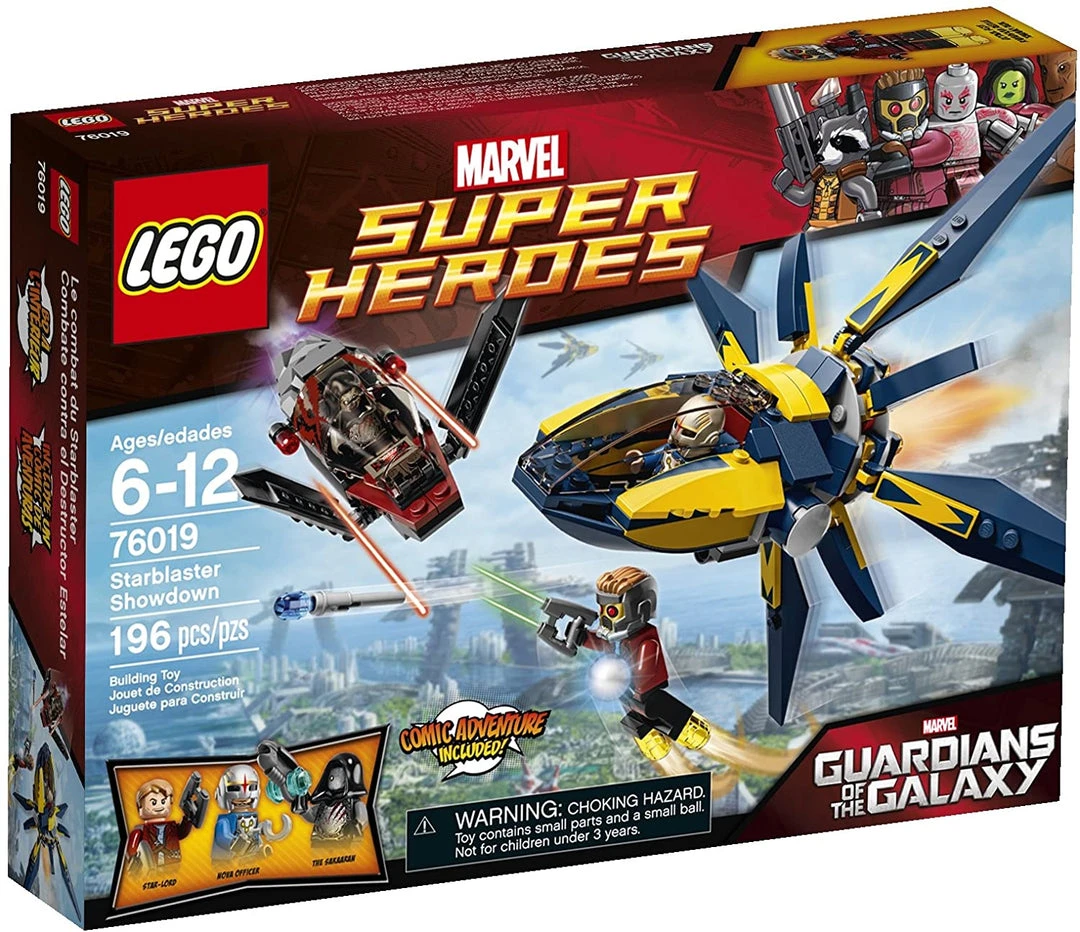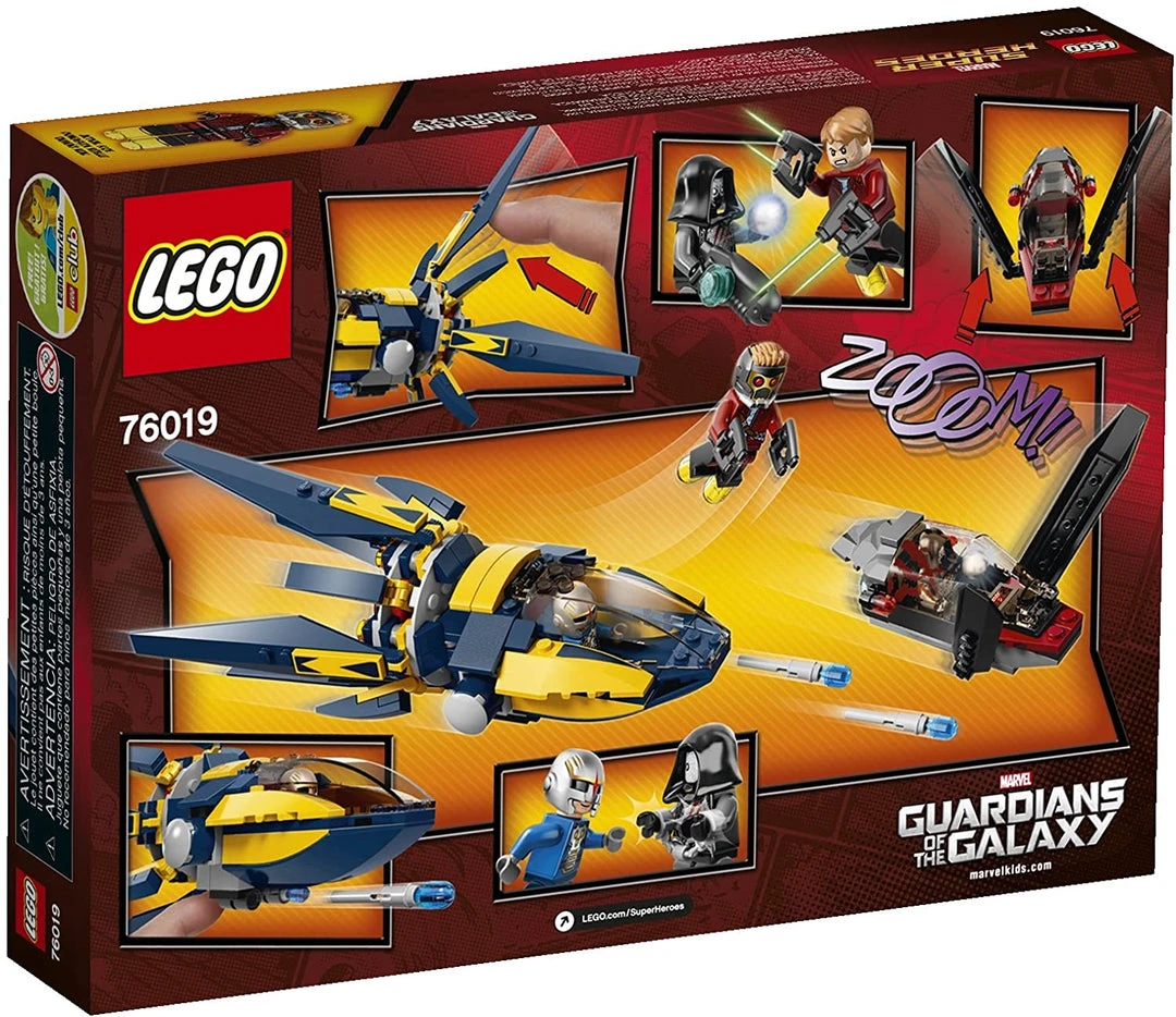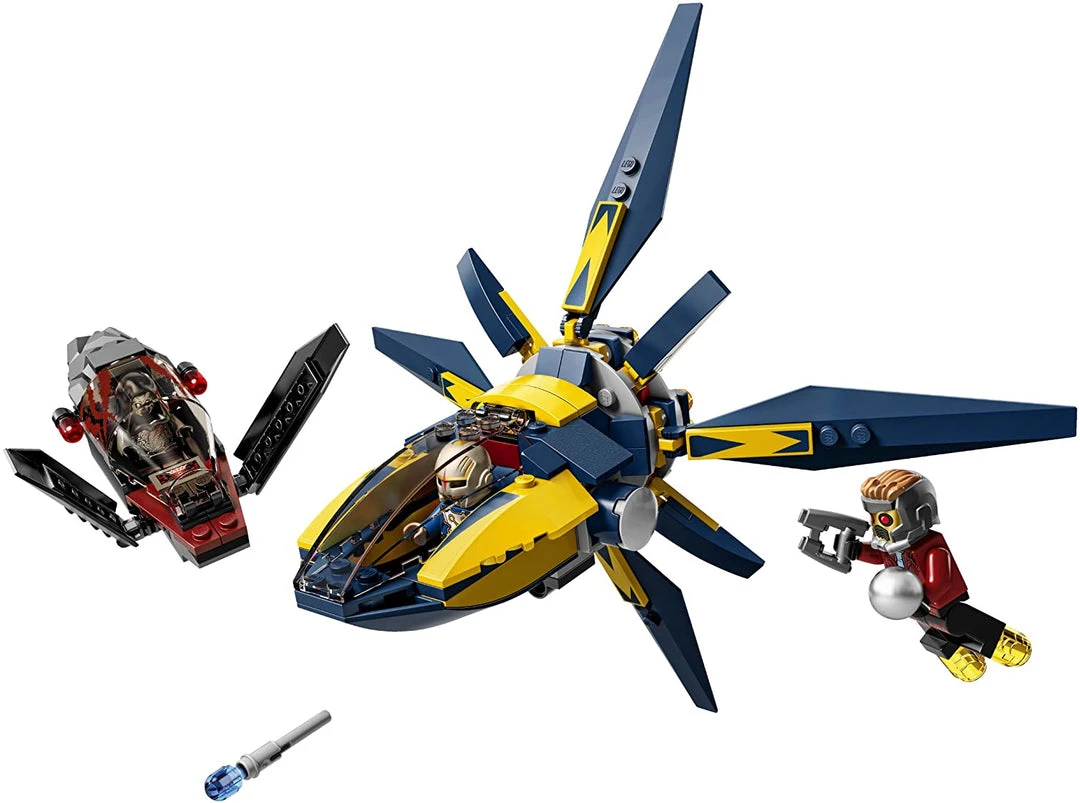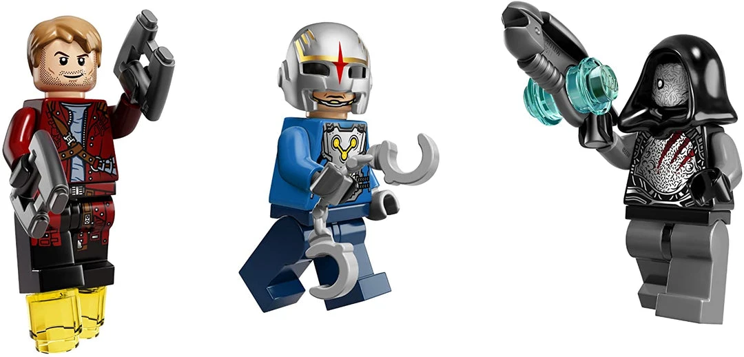 - Includes 3 minifigures with assorted weapons and accessories: Star-Lord, the Sakaaran and a Nova officer; Weapons include 3 space blasters