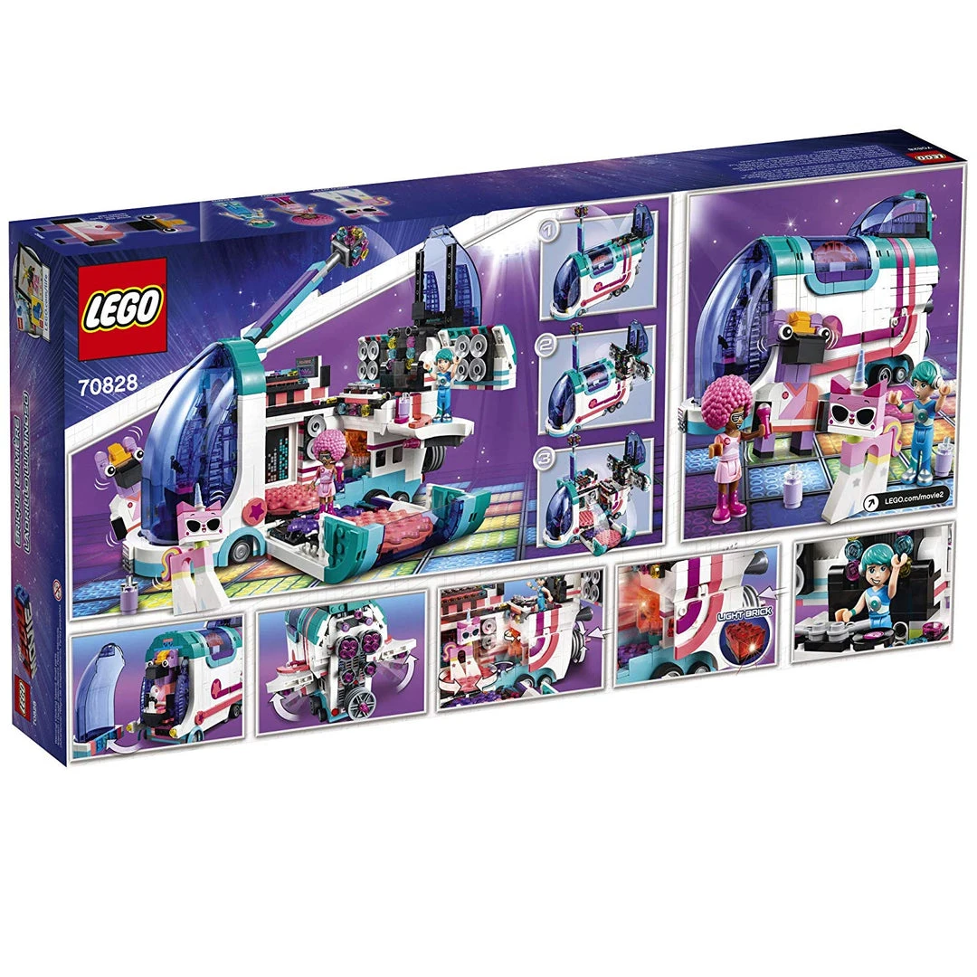 Let kids party on with Disco Kitty and friends by building their own toy bus with the LEGO Movie 2 70828 Pop-Up Party Bus. This fun LEGO Movie 2 party bus features an opening cockpit for the Zebe figure, opening roof and sides for easy play, foldout loudspeakers, a LEGO light brick to light up the rotating dancefloor and a flip-up disco ball with translucent-colored elements. This playset also includes 4 LEGO Movie 2 characters—buildable Disco Kitty as Unikitty and Zebe figures, plus Tempo and Melody mini-doll figures.