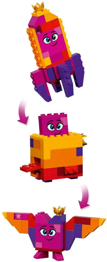 - Features multicolored LEGO® bricks to build and rebuild THE LEGO® MOVIE 2™ character Queen Watevra Wa’Nabi into 15 different forms: pile of bricks/Queen; car; butterfly, hammer; devil; volcano; cello; whale; octopus; gorilla; dinosaur; dragon; bat; rocket; and a toaster.