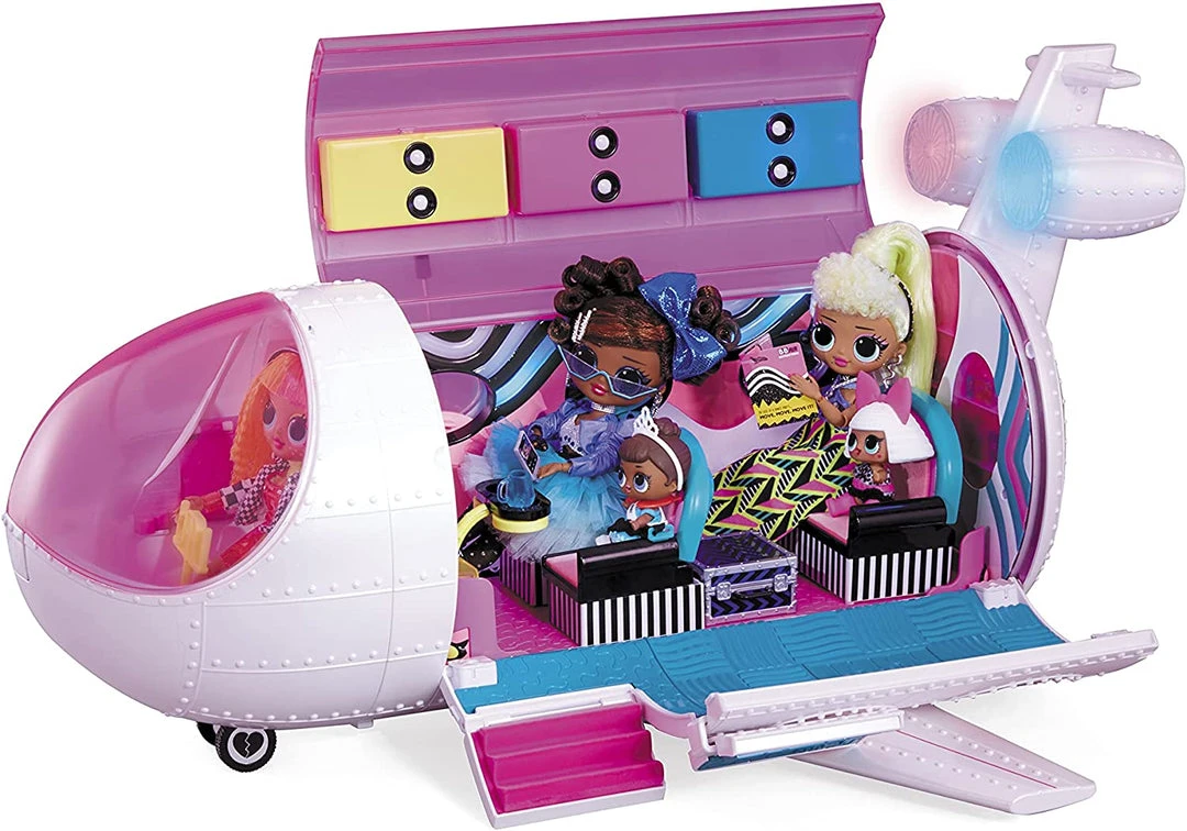 - UNBOX 50 SURPRISES – The LOL OMG Plane comes with 50 surprises to unbox including working lights & sounds, a drink cart with plates & cups, overhead compartments that open & close, and a lot more. So fasten that seatbelt and celebrate the surprises
