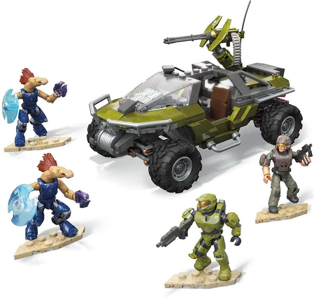 Feel the terrain like never before with this upgraded Warthog. Modeled after its appearance in Halo Infinite, the Warthog features a new buildable suspension that reacts to the ground underneath it. Or leave land behind by choosing to build a watercraft and jetpack. This construction set also includes 4 micro action figures that can be placed inside your vehicle of choice. Rally the troops, solider – it’s time to prepare for battle. Ideal for Probuilders, ages 8 and up